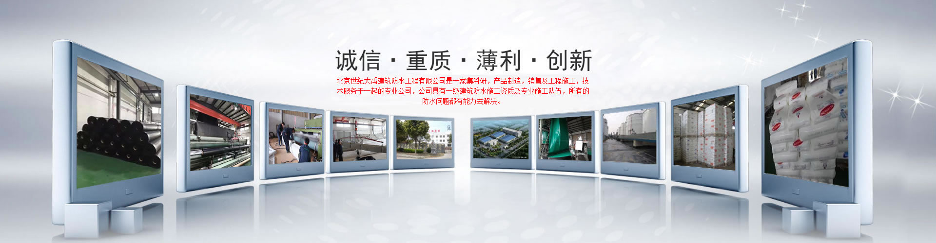 北京世紀(jì)大禹建筑防水工程有限公司是一家集科研,產(chǎn)品制造,銷售及工程施工,技術(shù)服務(wù)于一起的專業(yè)公司,產(chǎn)品主要包括道路橋梁專用材料、建筑堵漏材料、建筑防水卷材、建筑防水涂料等。產(chǎn)品行銷全國(guó),形成了覆蓋全國(guó)的營(yíng)銷服務(wù)網(wǎng)絡(luò)。產(chǎn)品廣泛應(yīng)用于建筑物屋面、地下、地鐵、隧道、橋梁、泳池、糧庫(kù)、種植屋面等防水、防潮、防腐、防滲等工程。公司具有一級(jí)建筑防水施工資質(zhì)及專業(yè)施工隊(duì)伍,所有的防水問(wèn)題都有能力去解決,作為系統(tǒng)防水解決方案的提供者,我們已經(jīng)將各項(xiàng)防水系統(tǒng)成功應(yīng)用于國(guó)家大型基礎(chǔ)設(shè)施建設(shè)項(xiàng)目中,防水系統(tǒng)優(yōu)良的應(yīng)用效果也獲得了用戶及社會(huì)各界的高度評(píng)價(jià)。 用戶滿意是企業(yè)永恒的追求,在充滿機(jī)遇挑戰(zhàn)的時(shí)期,將以市場(chǎng)為導(dǎo)向,以人才為根本,以技術(shù)為支撐,以資本為紐帶,打造一個(gè)實(shí)力雄厚、核心競(jìng)爭(zhēng)力強(qiáng)大的國(guó)際化企業(yè)。我們將用信念、追求和執(zhí)著開(kāi)啟新的航程,乘風(fēng)破浪,勇往直前,駛向我們的理想和目標(biāo),為人類及社會(huì)創(chuàng)造持久安全的環(huán)境及構(gòu)筑和諧的人居環(huán)境貢獻(xiàn)我們的力量! |